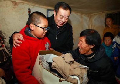 周恩义把棉衣和慰问品送到了贫困老人张淑兰家中。