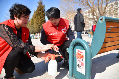 志愿者爱护公共环境。